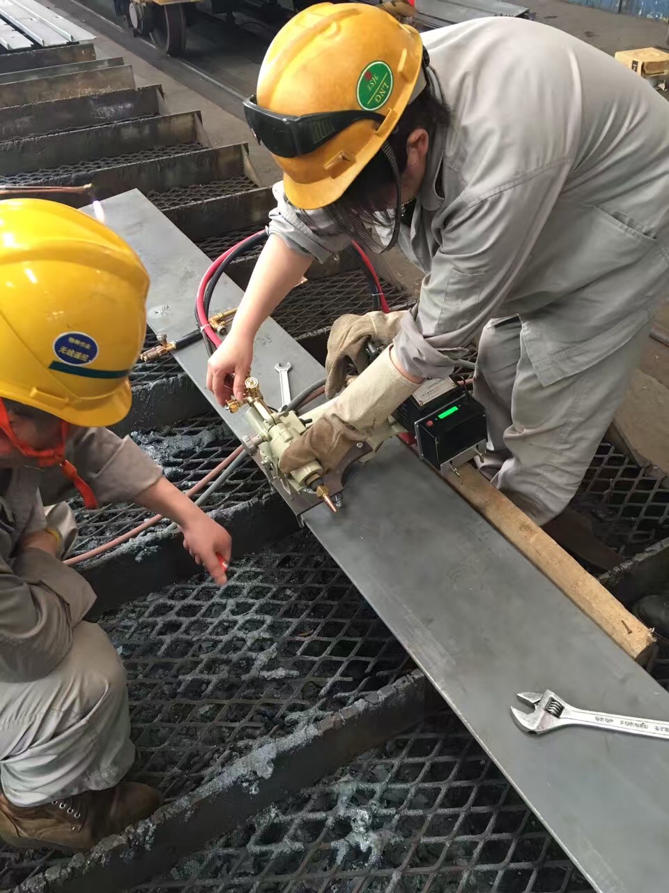 華威焊割電池驅(qū)動(dòng)仿形切割機(jī)在上海某造船廠投入使用