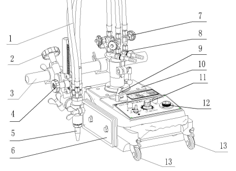 2.橫移手輪:調(diào)節(jié)割炬的水平位置 |