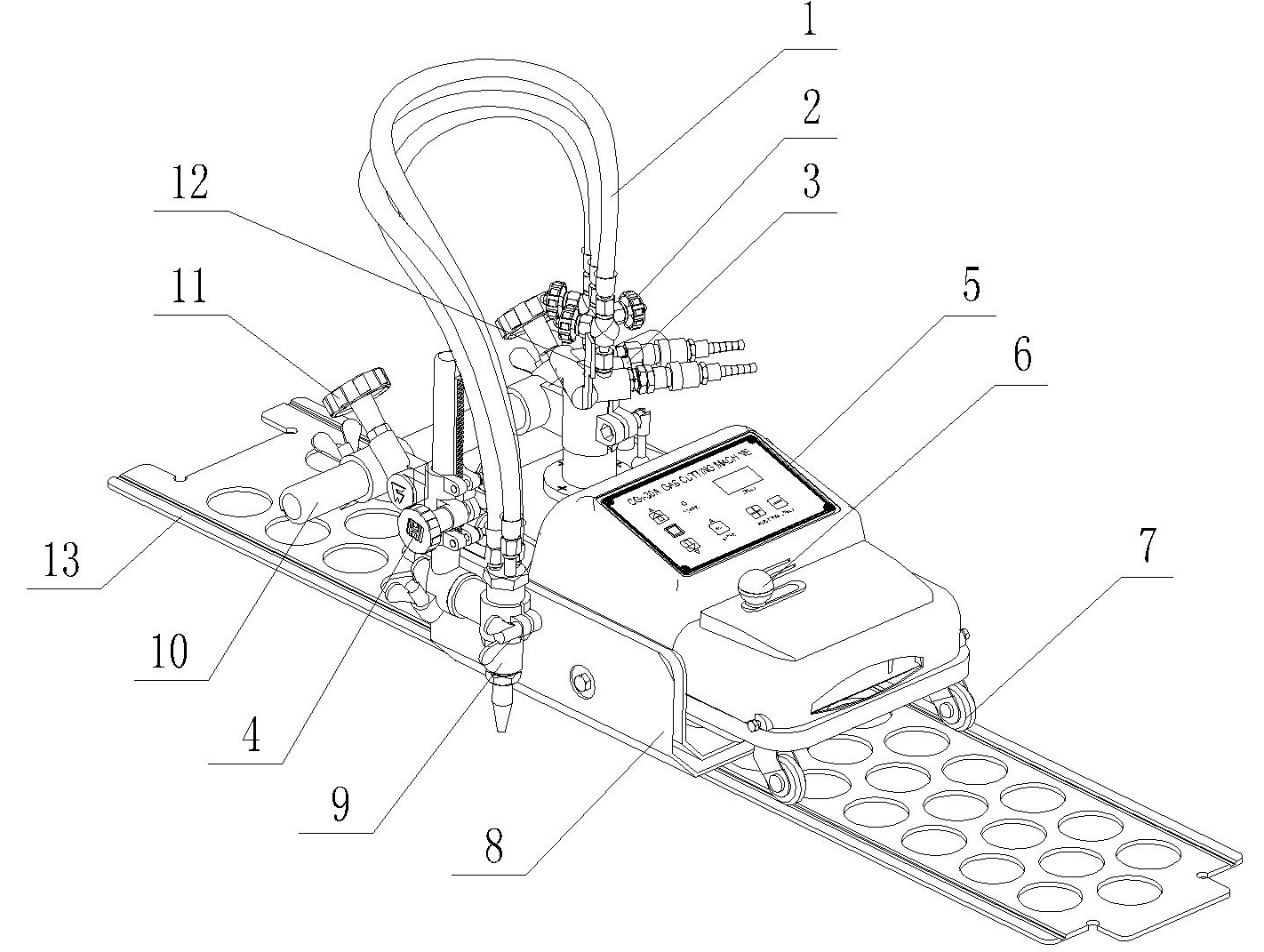 1.軟管:在氣體分配器和割炬之間連接,三條 8. 隔熱板:阻礙熱量向機器內部擴散。