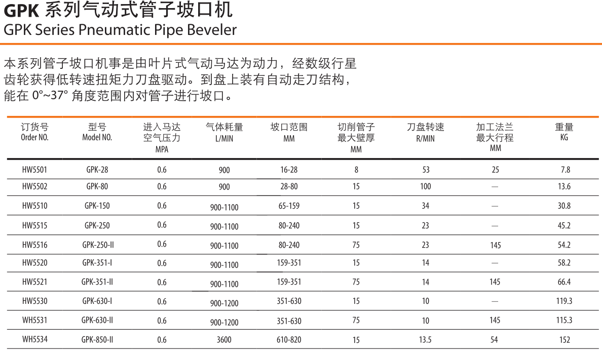 GPK系列坡口機(jī)專為鋼管的倒角、焊接坡口的切削而設(shè)計(jì)。其采用氣動(dòng)馬達(dá)作為動(dòng)力,內(nèi)漲式結(jié)構(gòu),自動(dòng)定位鋼管中心,操作方便。本機(jī)可對(duì)鋼管進(jìn)行倒角、焊接坡口及法蘭平面進(jìn)行加工。無(wú)論管壁厚薄,其加工性能與效率比起傳統(tǒng)工藝都有著不可替代的優(yōu)勢(shì)。