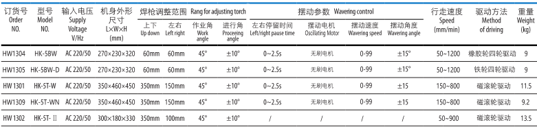 HK-5BW型焊接小車是適用于間斷或者連續的水平角焊結構的焊接自動裝置。尺寸的精密度高,運行速度均勻,可實現精密焊接。設有收弧裝置,收弧時間調節范圍在0-2.5S。智能化程度高,帶記憶儲存功能,可實現斷點恢復。