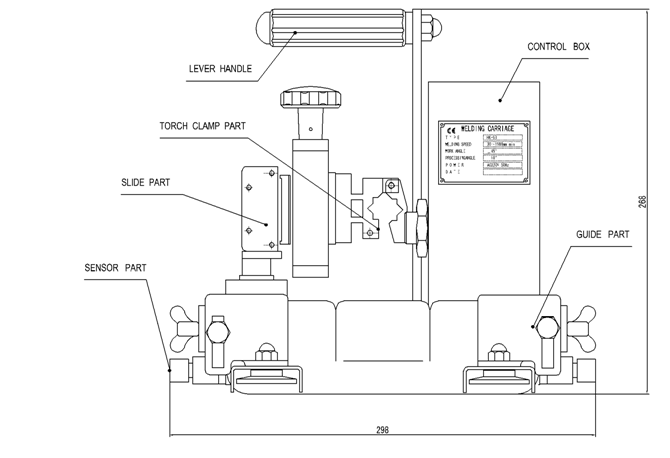8)SENSOR PART:感應(yīng)停止開關(guān)。焊接到工件末端時(shí)被觸動(dòng)后小車自動(dòng)停止工作。