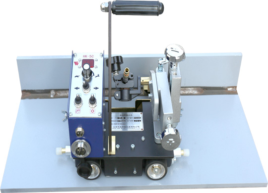 HK-5C由小車本體,X-Y滑塊,導(dǎo)向輪,焊槍夾具、感應(yīng)開關(guān)停止開關(guān),磁控手柄,控制箱等部件組成。