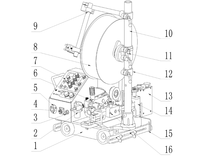 16左右調節移動座:是調節焊槍位置的裝置,焊接當中可以對焊槍進行左右距離的調節。
