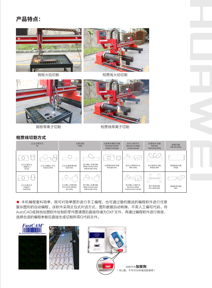 HNC-3000XG龍門式數控管板切割機是一種數字程序控制的現代化切割設備,除可以對各種金屬材料進行任意平面圖形切割,同時可以將圓管截斷,在圓管上切割各種形狀及相貫線的切割操作 ,它還具有自動化程度高、切割精度高、材料利用率高、生產效率高等特點。隨著機械電子技術和計算機技術的進步,數控切割機以其良好的人機對話操作界面、強大的輔助支持功能以及相對很低的設備投資,正被越來越多的企業所重視,在生產中得到越來越廣泛的應用。