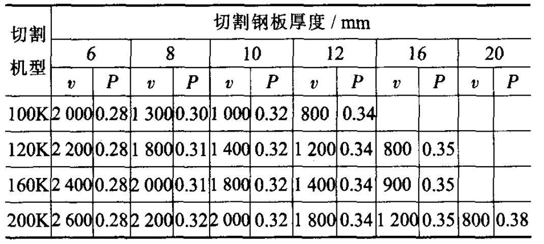 根據四種不同功率機型的試驗結果,得出了不同功率切割機切割不同厚度鋼板的最佳切割參數如表2所示。根據這些數據我們在部分廠家進行了實際應用切割,效果很好,切割質量大大提高。